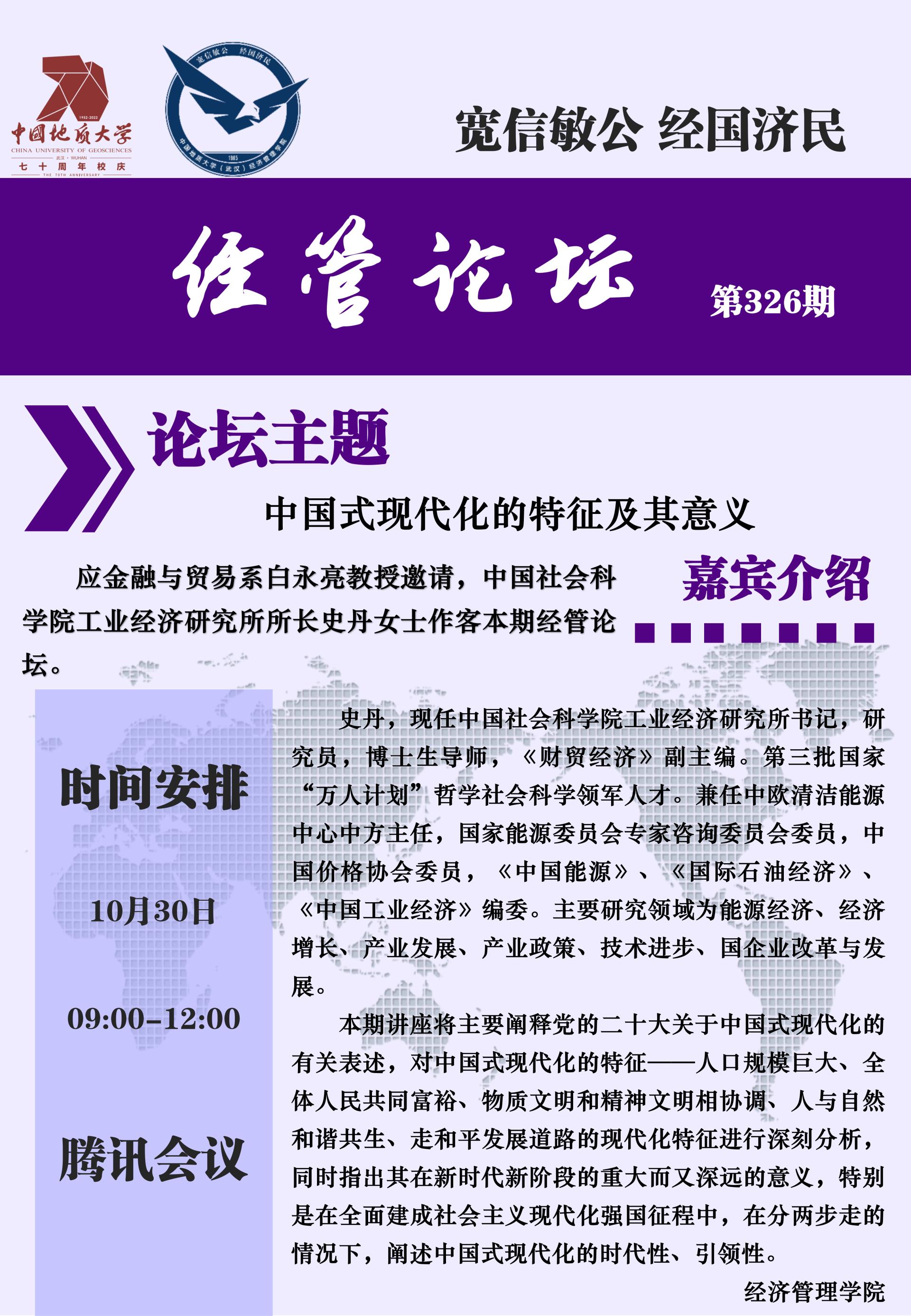 经管论坛(第326期)中国式现代化的特征及其意义