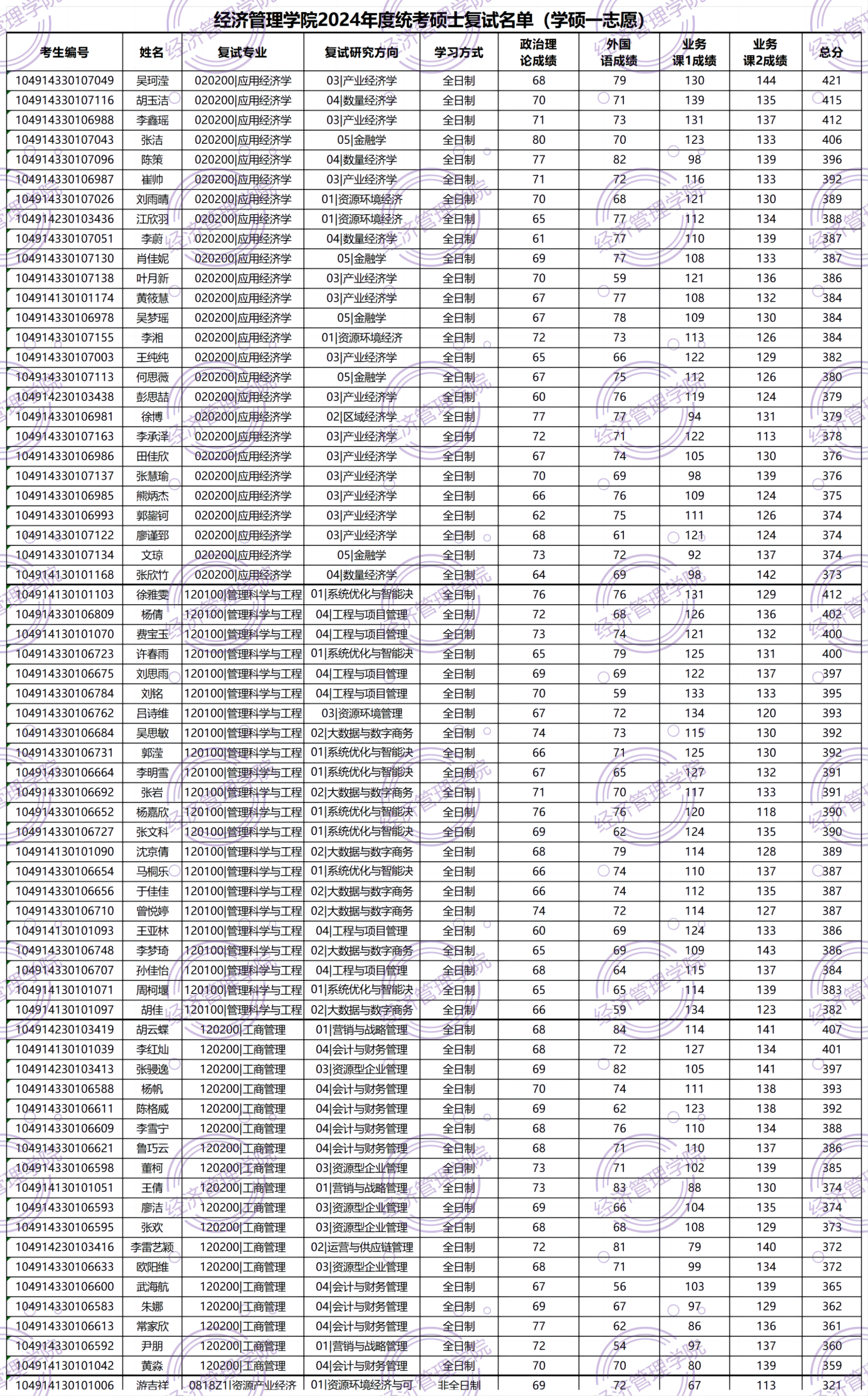 附件1:经济管理学院2024年度统考研究生复试名单(一志愿)_统考硕士初试成绩