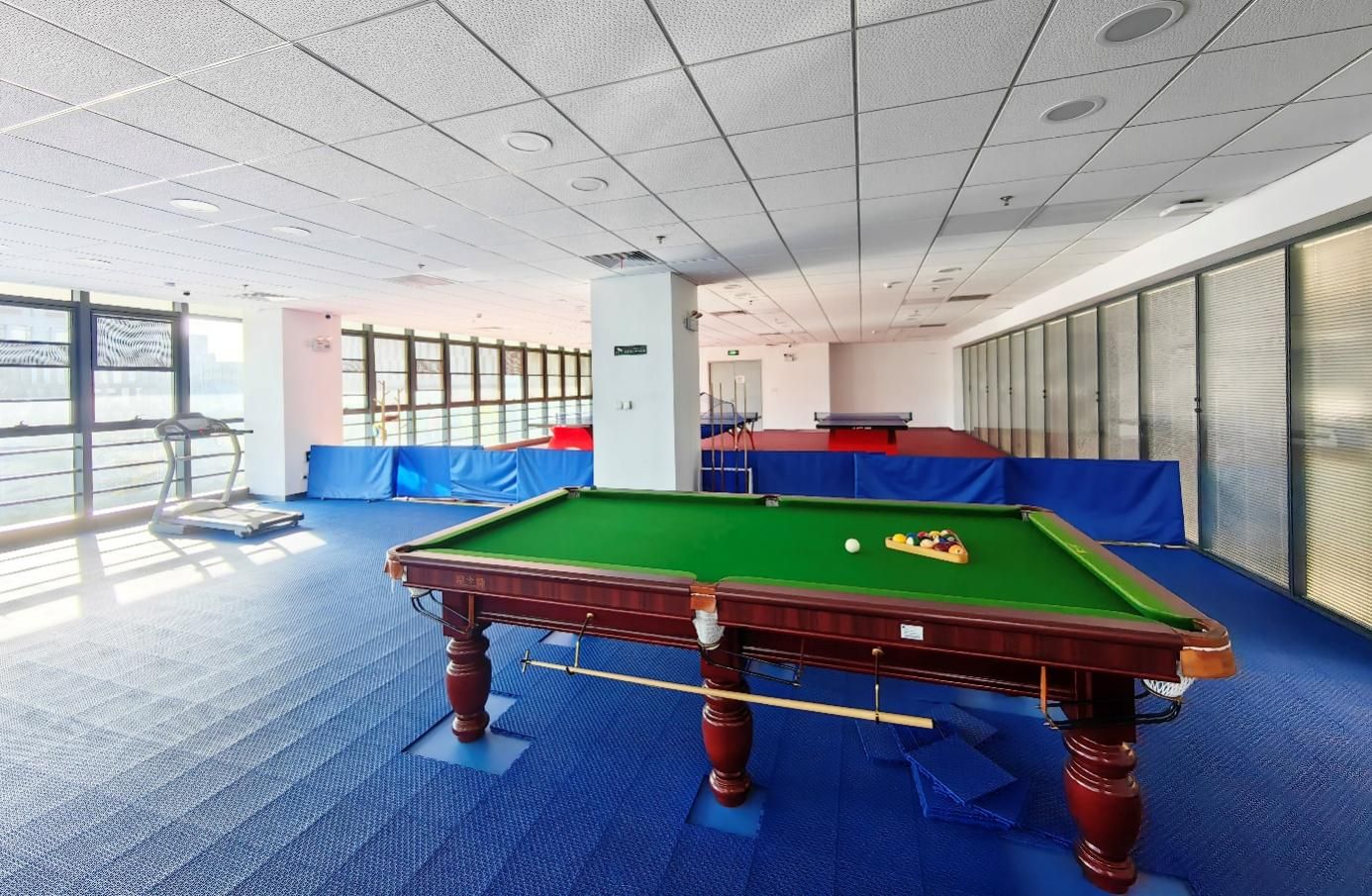 MBA活动中心拥有棋牌区、台球区、乒乓球区、按摩区、力量区等