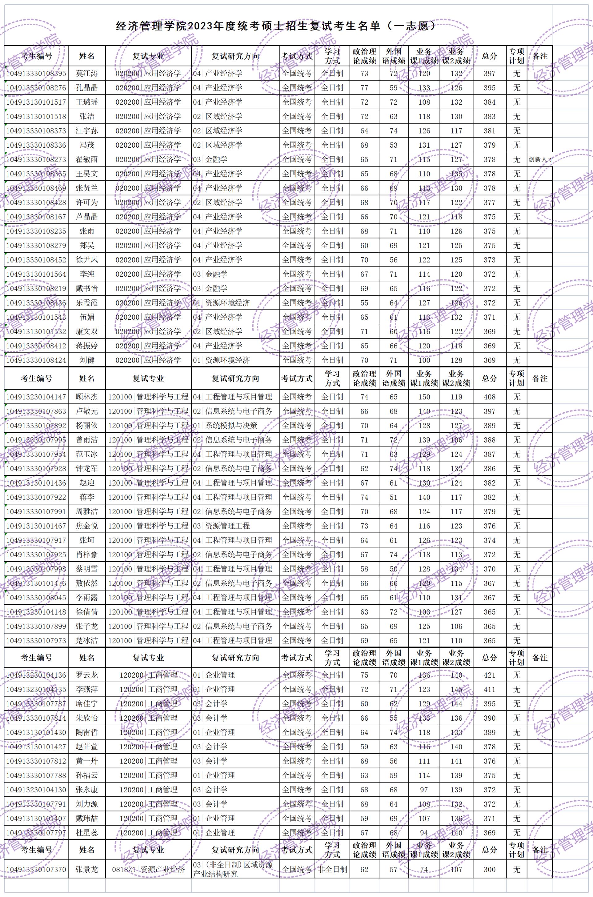 注:专业课笔试考核内容详见经济管理学院网站《硕士研究生招生考试自命题科目考试大纲(2023年考试适用)》(网址://semanhub.net/info/1131/6060.htm)。