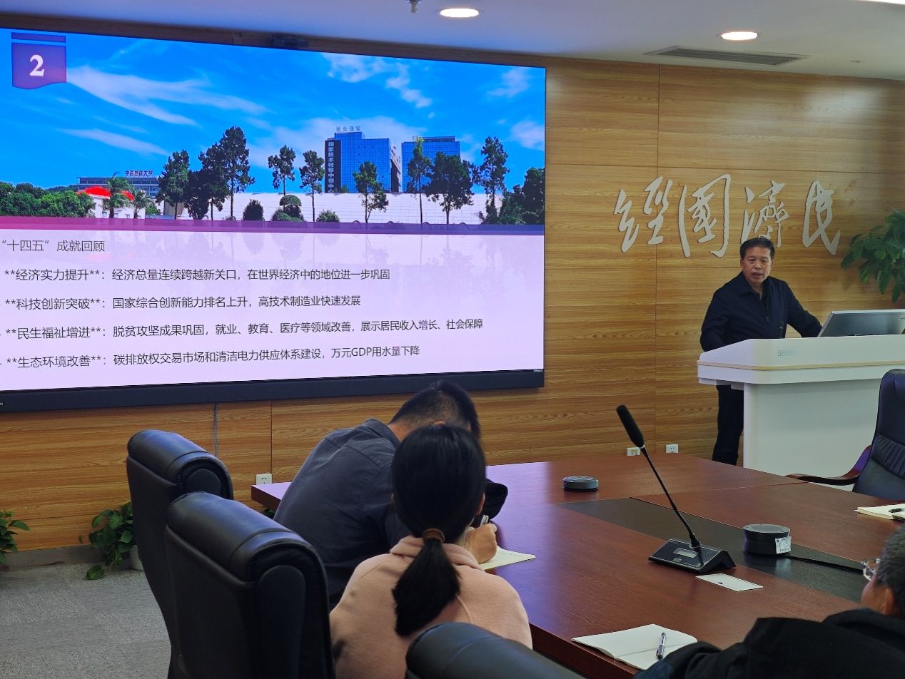 2025年10月31日,经济管理学院党委书记杨昌锐以“深入学习贯彻党的二十届四中全会精神开启中国式现代化新征程”为主题,面向学院全体教工党支部书记讲授专题党课,旨在夯实教职工党员干部的理论根基,推动四中全会精神与学院育人工作深度融合。