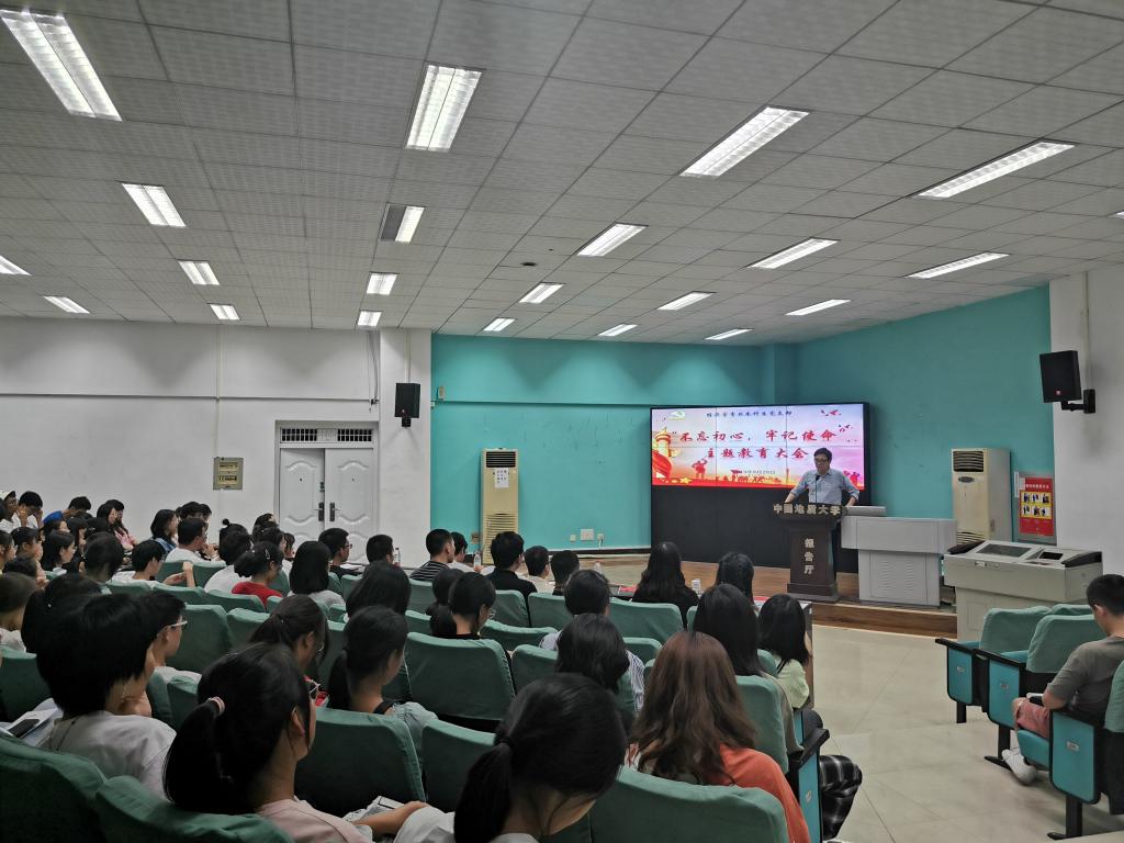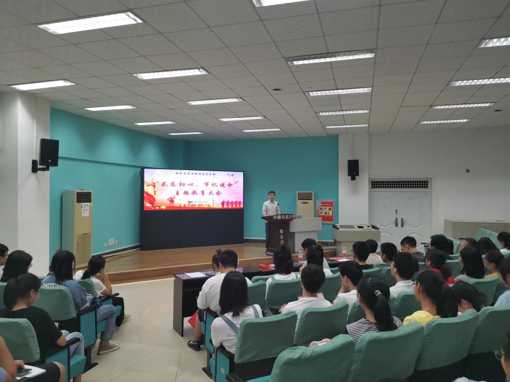 在全党上下深入开展“不忘初心、牢记使命”主题教育之际,经济管理学院经济学专业本科生党支部坚决贯彻落实习近平总书记重要指示精神和《关于开展第二批“不忘初心、牢记使命”主题教育的指导意见》,积极响应学校“不忘初心、牢记使命”主题教育工作方案,在学院党委的统筹和指导下,丰富形式、创新方法、抓实成效开展主题教育活动。9月29日,经济学专业本科生党支部“不忘初心、牢记使命”主题教育暨主题党日活动在北一楼报告厅举行,学院经济系齐睿副教授,2019级辅导员张弛,新生助班贺志恒、陈宏阳等受邀出席,经济学专业本科生党支部全体党员、入党积极分子和2019级经济学新生参加本次活动。