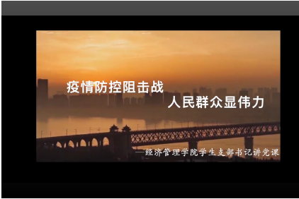 3月组织支部党员、入党积极分子开展线上疫情防控思政大课的学习研讨活动,并邀请辅导员张弛老师进行现场指导,切实把课程内容学深吃透,把课程的营养转化为抗击疫情的实际行动。支部响应学院党委号召,组织党员录制武汉加油视频并在校学工处官方网站、学院新媒体平台推出。与财务管理与会计学专业党支部联合录制《疫情防控阻击战 人民群众显伟力》微党课,获得学校“共抗疫情 爱国力行”学生党支部书记微党课大赛三等奖。