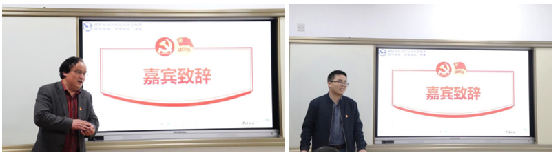 校图书馆馆长徐世球教授(左)、经济管理学院党委副书记李少杰老师(右)为活动致辞