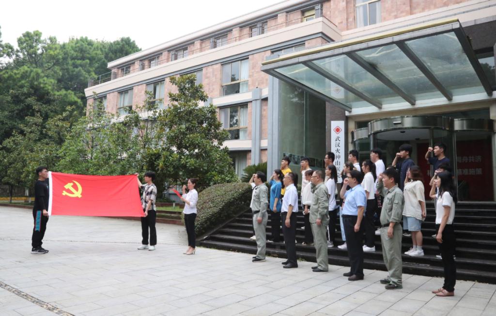 知音湖畔,火神山旁。在蔡甸区供电公司副总经理李丹波及客户服务中心主任兼支部书记姜涛等领导的带领下,全体师生首先参观了武汉市火神山医院,并沿着知音湖畔共同感受和回顾了那段特殊而又艰苦的时光。在国贸系党支部组织委员倪琳副教授的带领下,两个支部的全体党员代表、学生入党积极分子在鲜艳的党旗下高举右拳,重温入党誓词,用高昂而又庄严的宣誓表达了对党的忠诚和热爱,再次体会作为一名共产党员的责任感和使命感。