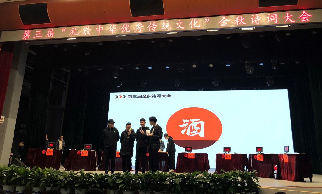 本次金秋诗词大会的主题为“诵读经典诗词,续写时代华章”,意在弘扬中华民族优秀传统文化,在校内营造“学习、诵读、感悟”经典诗词的礼敬中华传统文化的氛围。经过学生踊跃报名,按照学校要求,色漫网 共推选三位研究生、一位本科生参加比赛。团队组建后,四位团队成员积极备赛,12月初,顺利通过了笔试预赛,成为八支晋级决赛的团队之一。