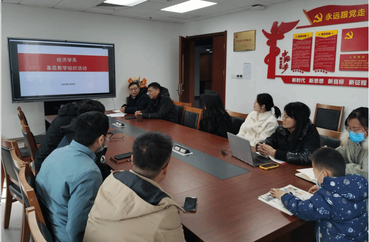2025年1月9日下午,经济学系组织召开基层教学组织建设研讨会,系全体教师参加,学校教学督导朱冬元教授参加会议,系主任刘江宜主持会议。