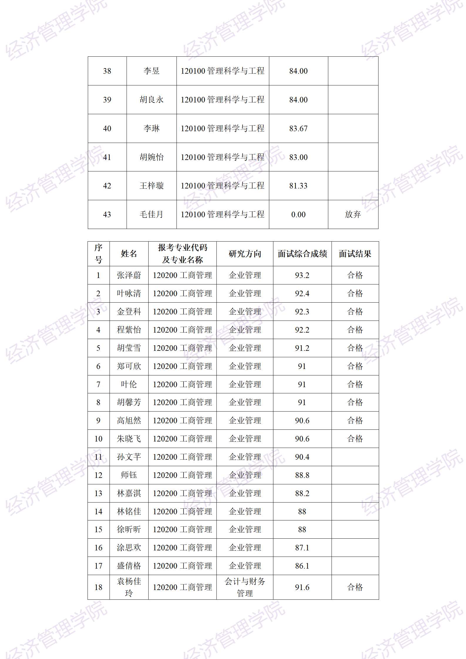经济管理学院学术型2020年第六届校园开放日面试结果(见附件)现进行公示。公示起止时间为2020年7月17日至7月30日止。公示期内若有异议,请实名书面申诉(限工作日)。联系人:王老师,Email:[email protected]。