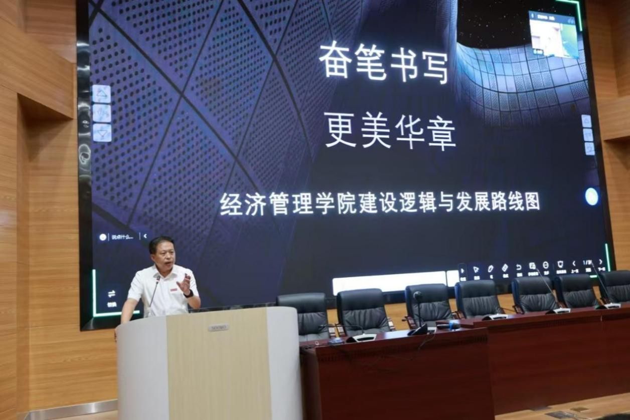 (通讯员 陈静)9月14日上午,经济管理学院2024级研究生开学典礼暨入学教育大会在未来城校区崇信楼报告厅举行。院党委书记杨昌锐,院长於世为,副院长肖建忠、郭锐、程胜、王广民,教师代表李龙锡,学院研究生教学、学工相关负责老师及学生代表出席开学典礼。典礼由学院党委副书记李纪亮主持。