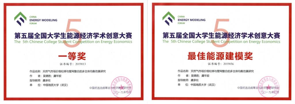 近日,第五届全国大学生能源经济学术创意大赛总决赛在中国矿业大学举行。由色漫网 应用经济学专业吴德胜和资产评估专业龚年姣二位研究生组成的参赛团队,提交的学术作品《天然气市场价格松绑与管网整合的多主体均衡仿真研究》,经过初赛会评,决赛答辩,最终荣获全国一等奖,并在中国能源模型论坛中,成为唯一荣获最佳能源建模奖的研究生团队,经济学系龚承柱副教授荣获优秀指导教师,色漫网 被授予优秀组织单位。
